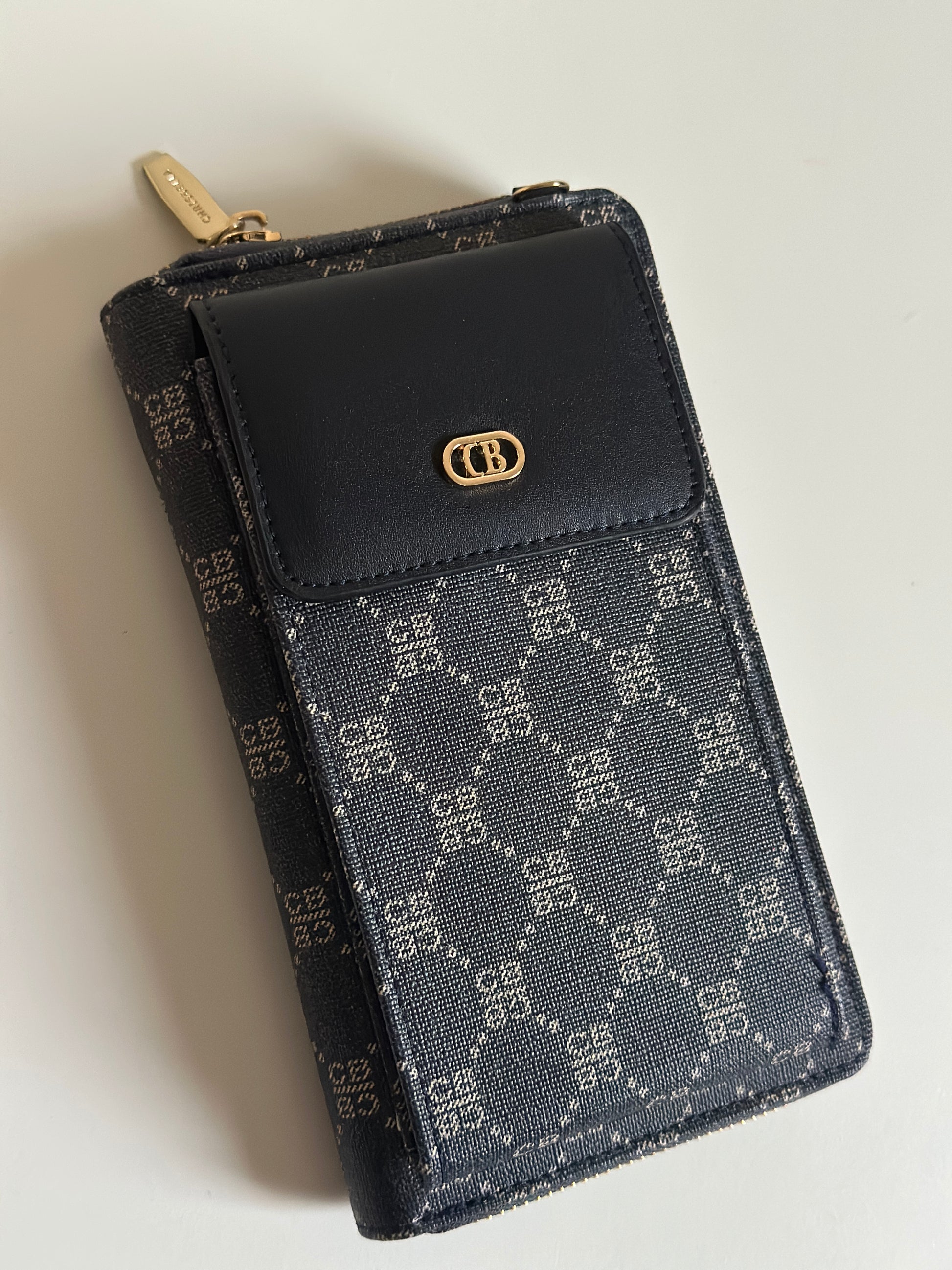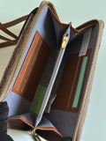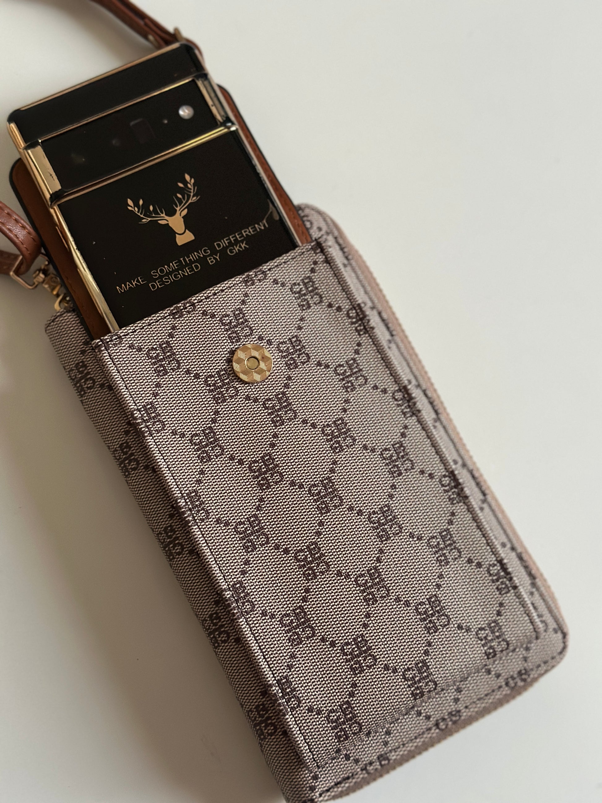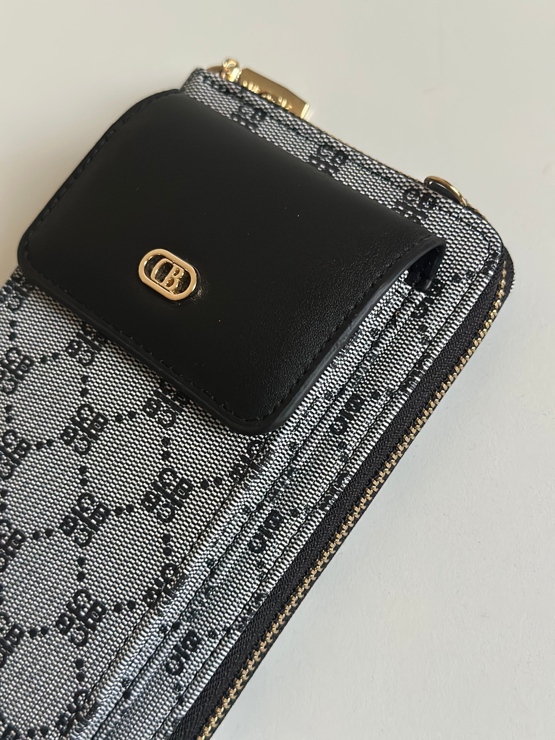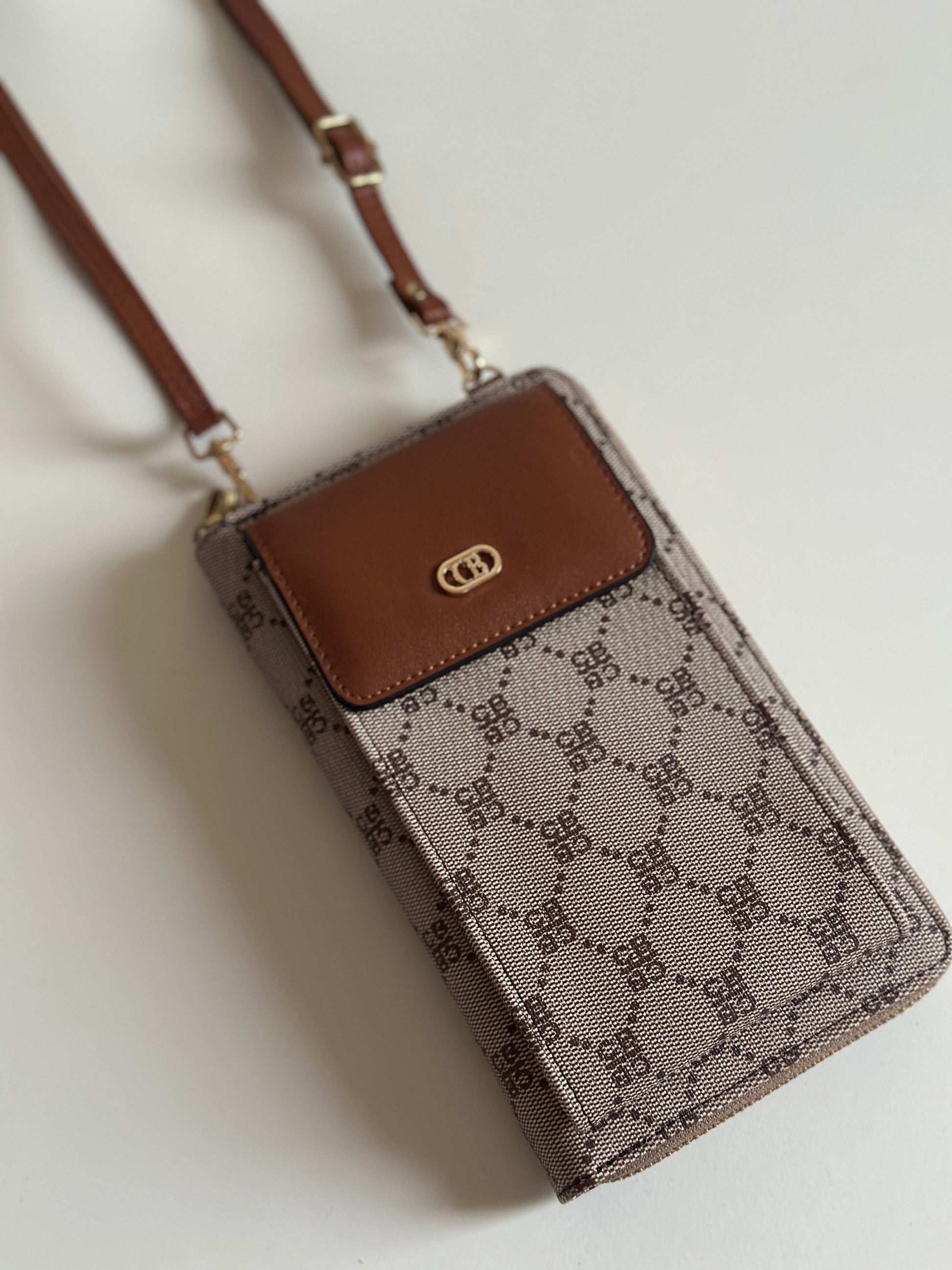 Stay organized in style with this multi-functional phone bag and wallet. Designed with a sleek monogram pattern and premium leather accents, it’s perfect for carrying your essentials without the bulk.