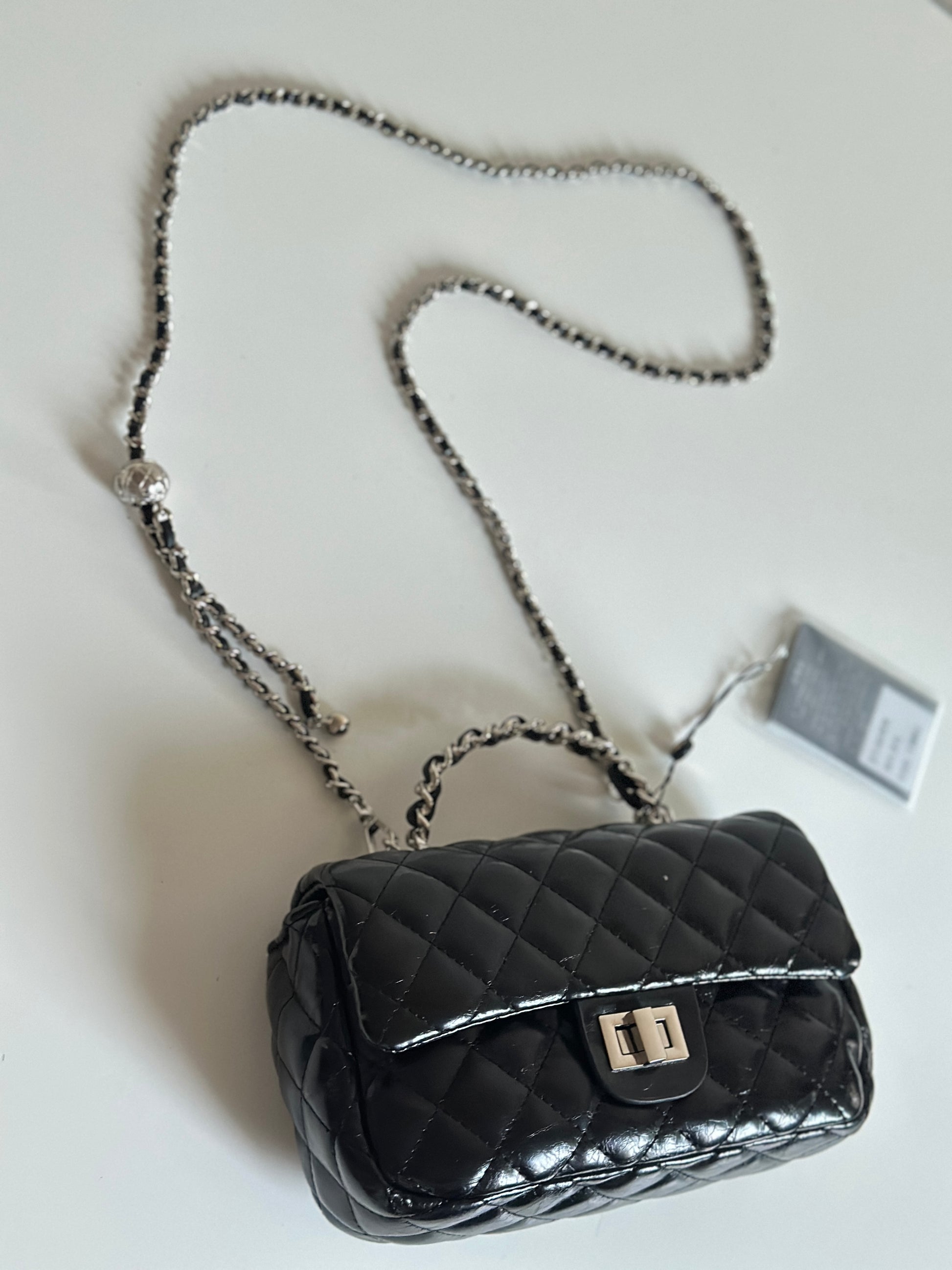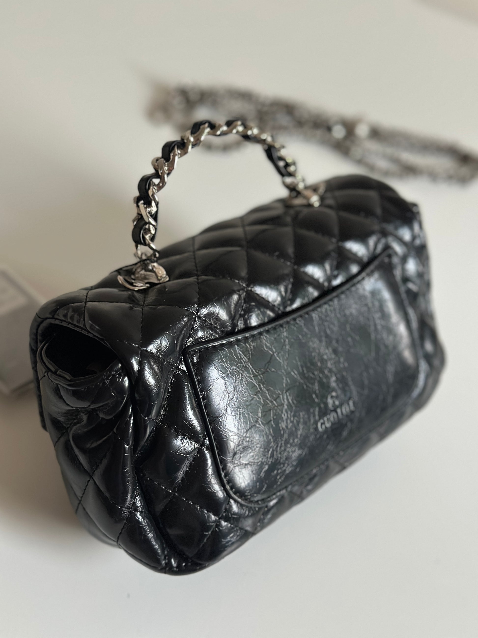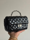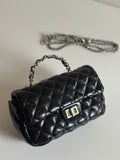Quilted Black Mini Flap Bag with Chain Strap & Top Handle