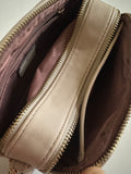 With two spacious zipper compartments, you’ll have plenty of room to organize essentials like your phone, wallet, and makeup. Gold-tone hardware, a stylish emblem, and an adjustable strap ensure both style and comfort, whether worn crossbody or on the shoulder.