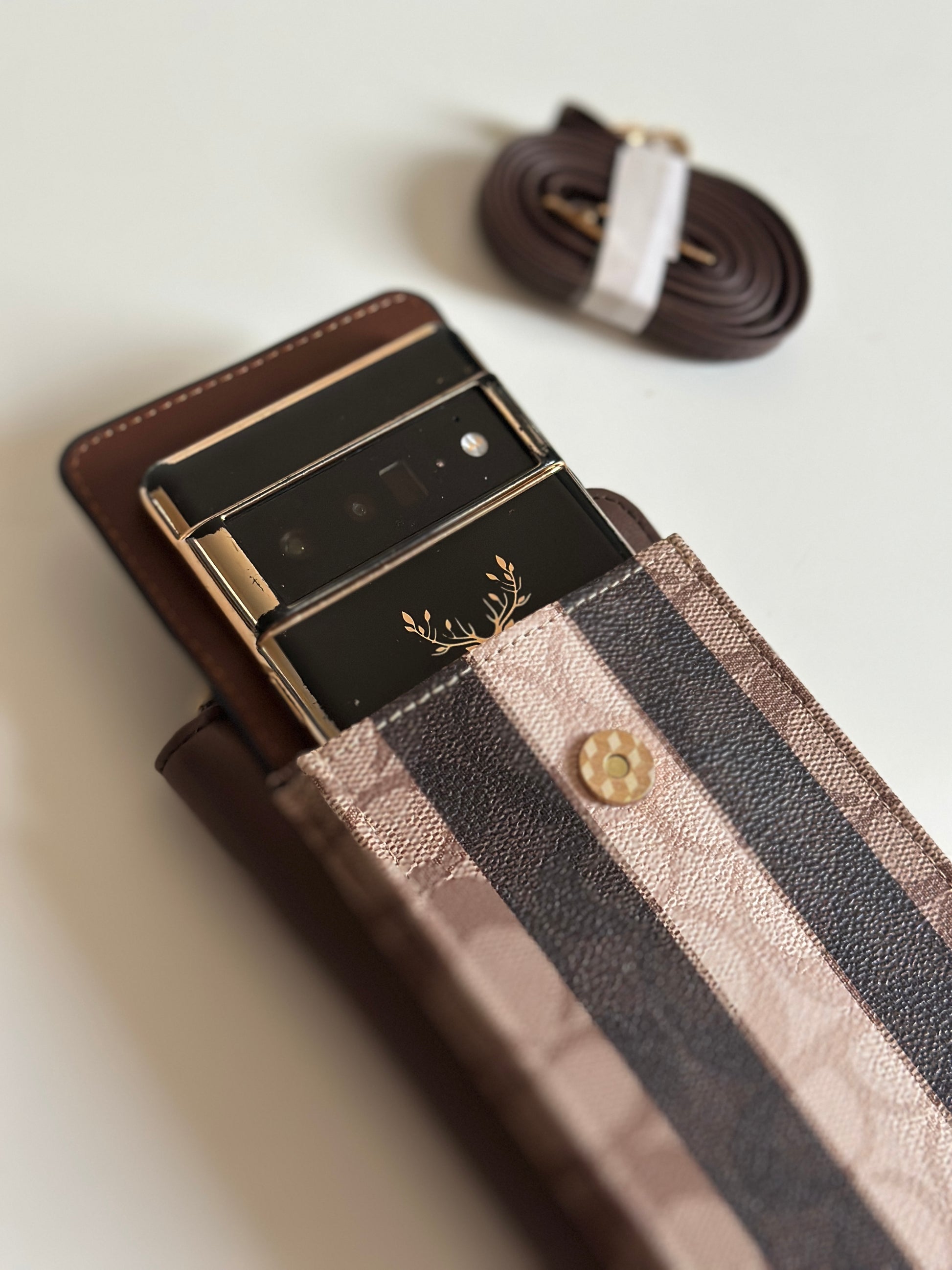 Carry style and convenience everywhere with this striped multi-function phone bag. A perfect balance of fashion and practicality, this bag is designed to keep your phone, cards, and cash in one secure place.