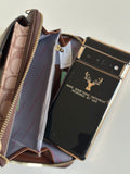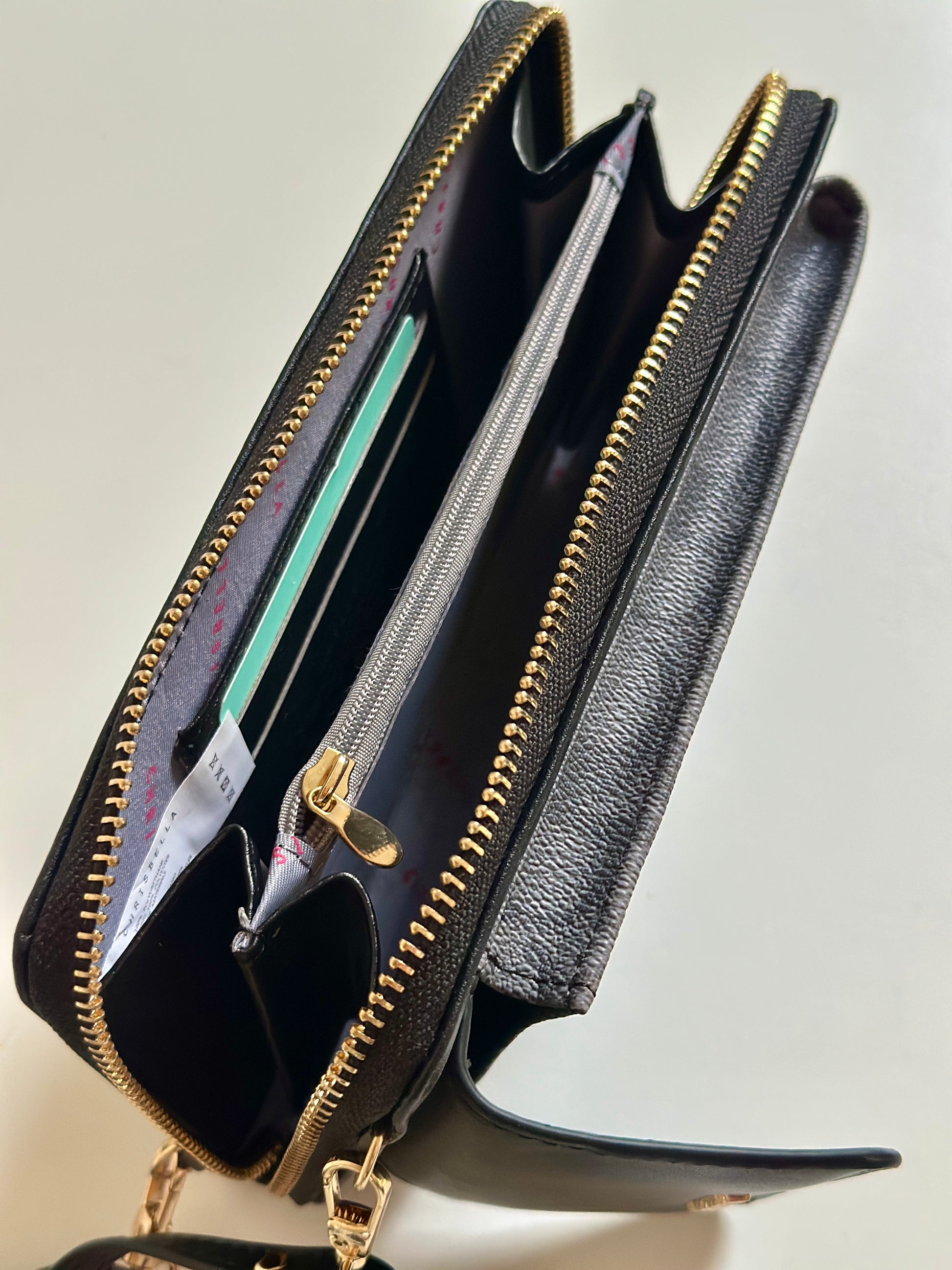 - Closure: Zip-around wallet & magnetic snap for phone compartment