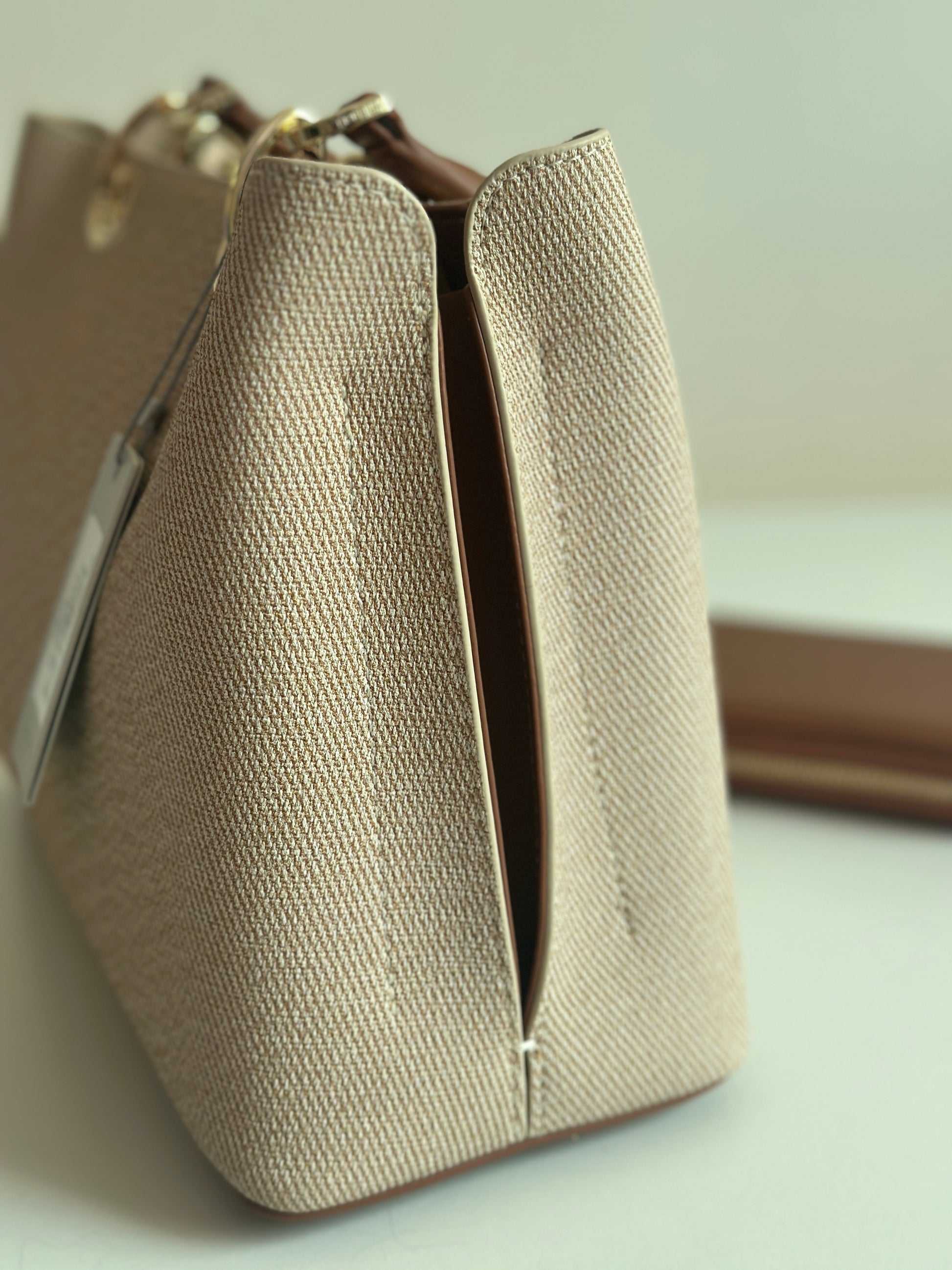Designed with premium textured finish and sturdy top handles, it combines elegance with practicality. The spacious interior features multiple compartments, including a secure zipper pocket, making it perfect for work, travel, or daily essentials.